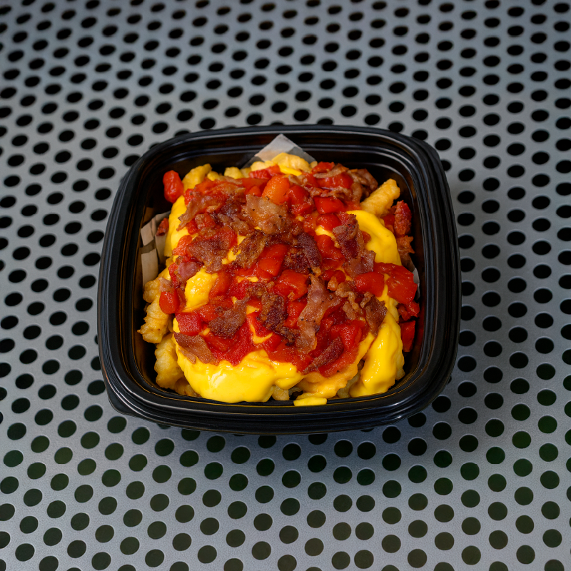 Papas Fritas Crinkle 400 grs, Salsa de Queso Cheddar, Original Bacon,